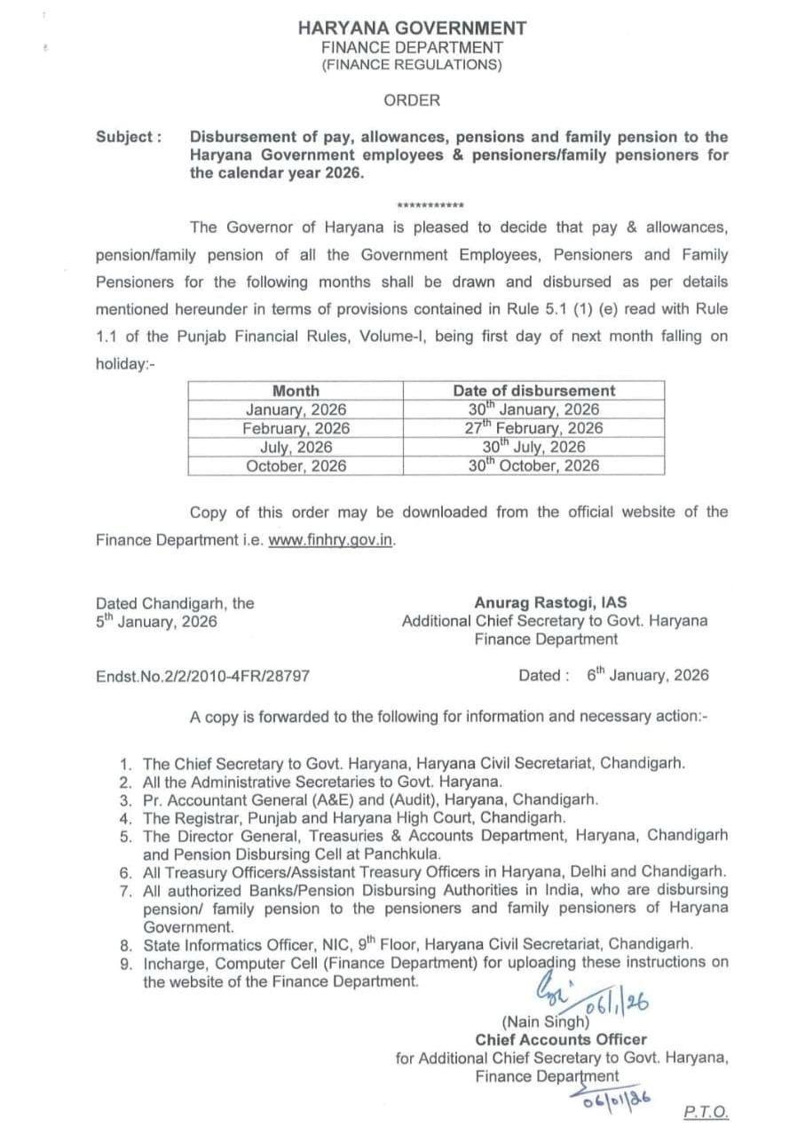 इसी प्रकार, जुलाई के लिए वेतन एवं पेंशन 30 जुलाई को तथा अक्टूबर माह के लिए 30 अक्टूबर 2026 को जारी की जाएगी।